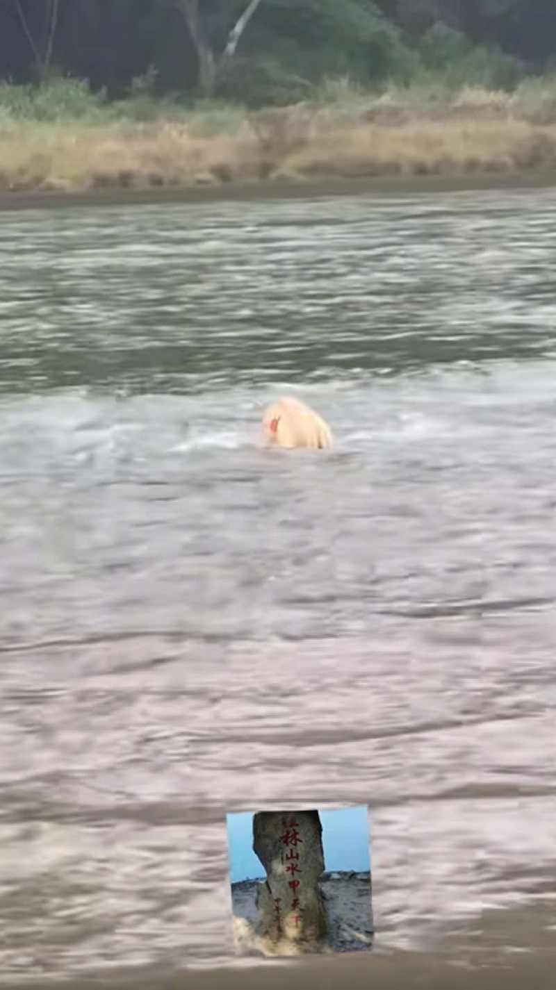 由于湖南湘西地区遭遇暴雨,当地边城茶峒景区受到影响。有游客准备到“一脚踏三省”的地标石碑打卡,结果发现“一脚踏三省”五个字淹得只剩“一脚”两个字还露在水面上。