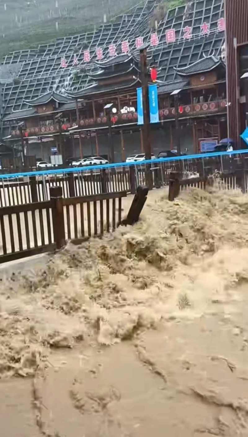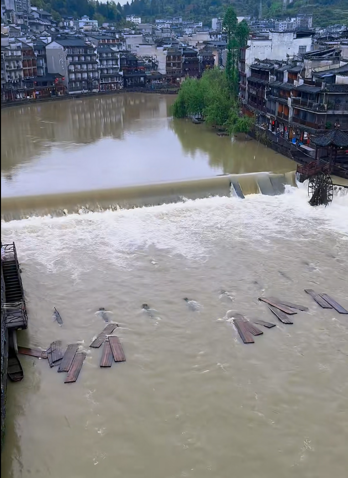 同样受到暴雨影响的还有湘西凤凰古城景区。有游客拍到景区内河流涨水,淹没了平时供游客步行过江的人行桥。凤凰古城景区一名工作人员向记者确认,视频情况属实。“是的,现在水还没有退到安全位置。游船是可以下水了,但是步行的路线还是受限,因为一直在下雨。现在古城区域游览不受影响,但游船区域还是有影响,部分地方需要绕行。”